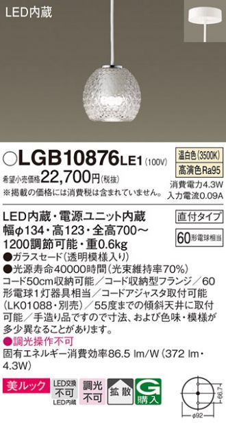 LGB10876LE1商品詳細 Panasonic(パナソニック)ペンダント LGB10876LE1直付吊下型 LED(温白色) ダイニング用ペンダント メーカーホームページはこちらから LGB10876LE1 メーカー標準価格 ¥22,700(税込 ¥24,970) 販売価格 ¥7,899 (税込 ¥8,688) 銀行振込ご決済はご利用いただけません。ご決算方法の変更をお願いする場合がございますので予めご了承下さい。 数量 LED 工事必要 商品一覧に戻る 最近チェックした商品 XLGB1111CE1 LGB16793LE1 商品一覧に戻る