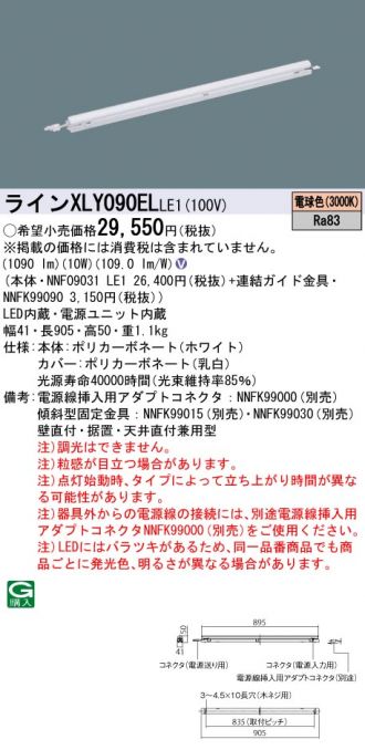 天井直付型・壁直付型 LED(電球色) シームレス建築化照明器具 L900タイプ C-Slim(シースリム) シームレス建築化照明器具(NNF09031LE1+NNFK99090)