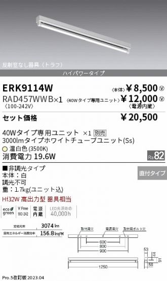 ERK9114W-RAD457WWB商品詳細 ENDO(遠藤照明)ベースライト ERK9114W-RAD457WWBベースライト 反射笠なし器具(トラフ) 40Wタイプ(ERK9114W+RAD457WWB) メーカーホームページはこちらから ERK9114W-RAD457WWB メーカー標準価格 ¥20,500(税込 ¥22,550) 販売価格 ¥9,430 (税込 ¥10,373) 数量 LED 工事必要 電源内蔵40Wタイプ専用ユニットx1付3000lmタイプホワイトチューブユニット(Ss)温白色消費電力 19.6W■非調光タイプ本体:白調光不可重:1.7kg(ユニット込)定格光束:3074lm (156.8lm/W)Hf32W 高出力型 器具相当 商品一覧に戻る 最近チェックした商品 WNS575830B WV2302 商品一覧に戻る