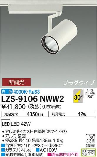 LZS-9106NWW2商品詳細 DAIKO(大光電機)スポットライト LZS-9106NWW2スポットライト メーカーホームページはこちらから LZS-9106NWW2 メーカー標準価格 ¥41,800(税込 ¥45,980) 販売価格 ¥19,980 (税込 ¥21,978) 数量 LED ダクトレール用 受注生産品プラグタイプLED 42W 白色/4000K径φ85 長140 吊高135mm1.0kg●首振下方210°上方30°・回転360°●ガラスパネル付●AC100V●光束維持時間40,000時間●調光器併用不可定格光束 4350 lm定格消費電力 42 W固有エネルギー消費効率 103.5 lm/WRa831/2ビーム角 34° 商品一覧に戻る 最近チェックした商品 LZS-9106NWM2 商品一覧に戻る