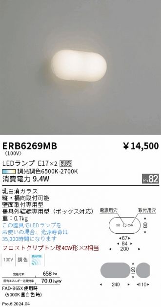 ERB6269MB商品詳細 ENDO(遠藤照明)ブラケット ERB6269MBブラケットライト メーカーホームページはこちらから ERB6269MB メーカー標準価格 ¥14,500(税込 ¥15,950) 販売価格 ¥6,670 (税込 ¥7,337) 数量 LED 工事必要 ランプ別売 LEDランプ E17x2別売調光調色6500K-2700K消費電力 9.4W乳白消ガラス縦・横向取付可能壁面取付専用型器具外結線専用型(ボックス対応)重:0.7kgこの器具でLEDランプをお使いの場合、光源寿命は35,000時間になります定格光束:658lm (70.0lm/W)FAD-865X 使用時(5000K 昼白色 時)フロストクリプトン球40W形×2相当 商品一覧に戻る