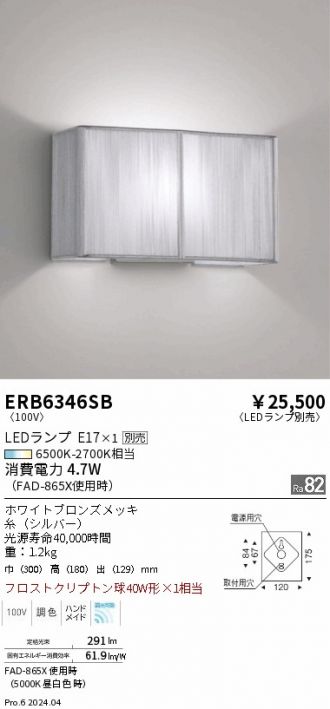ERB6346SB商品詳細 ENDO(遠藤照明)ブラケット ERB6346SBブラケット メーカーホームページはこちらから ERB6346SB メーカー標準価格 ¥25,500(税込 ¥28,050) 販売価格 ¥11,730 (税込 ¥12,903) 数量 LED 工事必要 ランプ別売 〈LEDランプ別売〉LEDランプ E17x1別売6500K-2700K相当消費電力 4.7W(FAD-865X使用時)ホワイトブロンズメッキ糸(シルバー)光源寿命40,000時間重:1.2kg巾(300) 高(180) 出(129)mm定格光束:291lm (61.9lm/W)FAD-865X 使用時(5000K 昼白色 時)フロストクリプトン球40W形×1相当 商品一覧に戻る